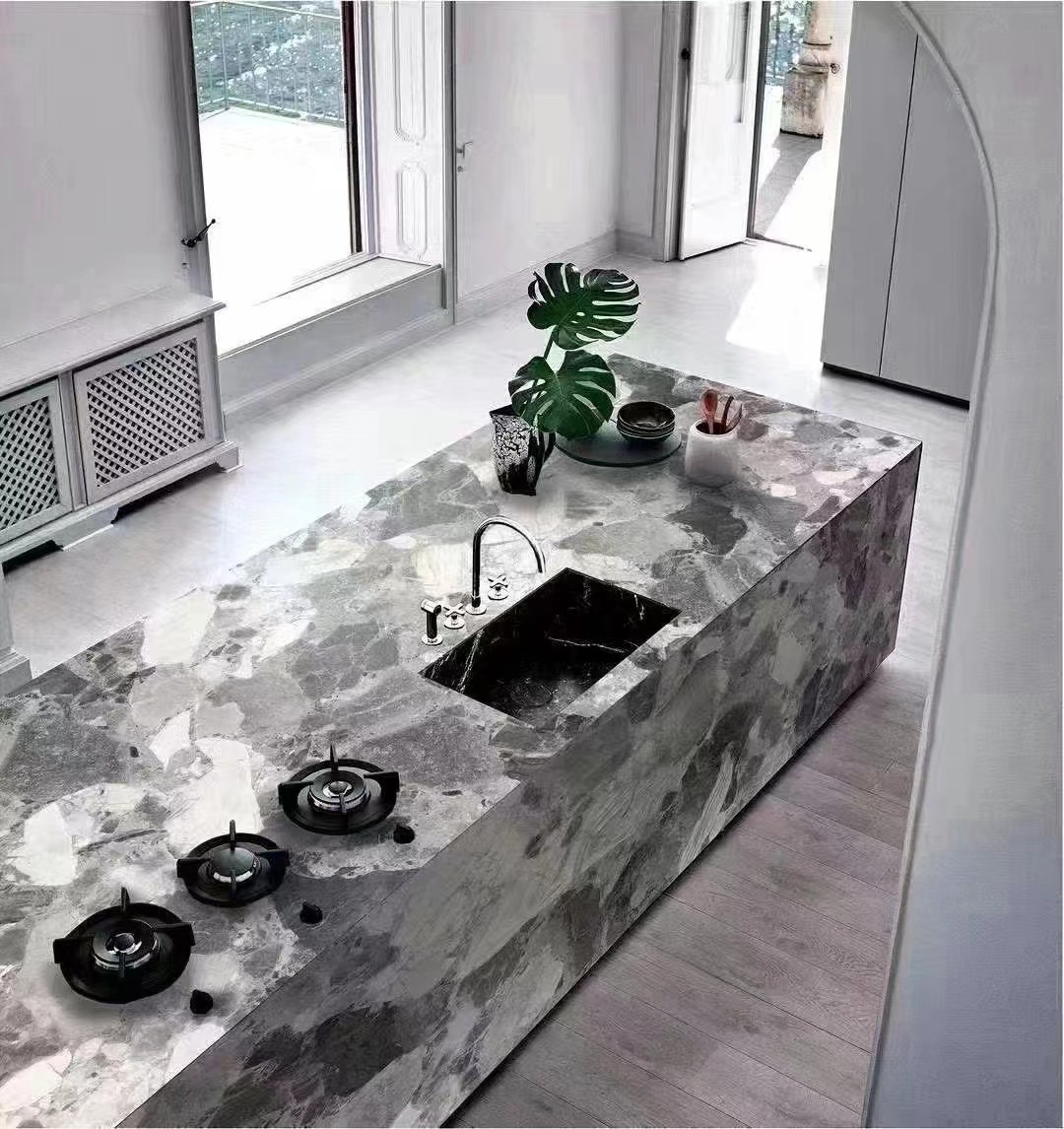 세포 디 그레 대리석 주방 아일랜드 탑 디자인